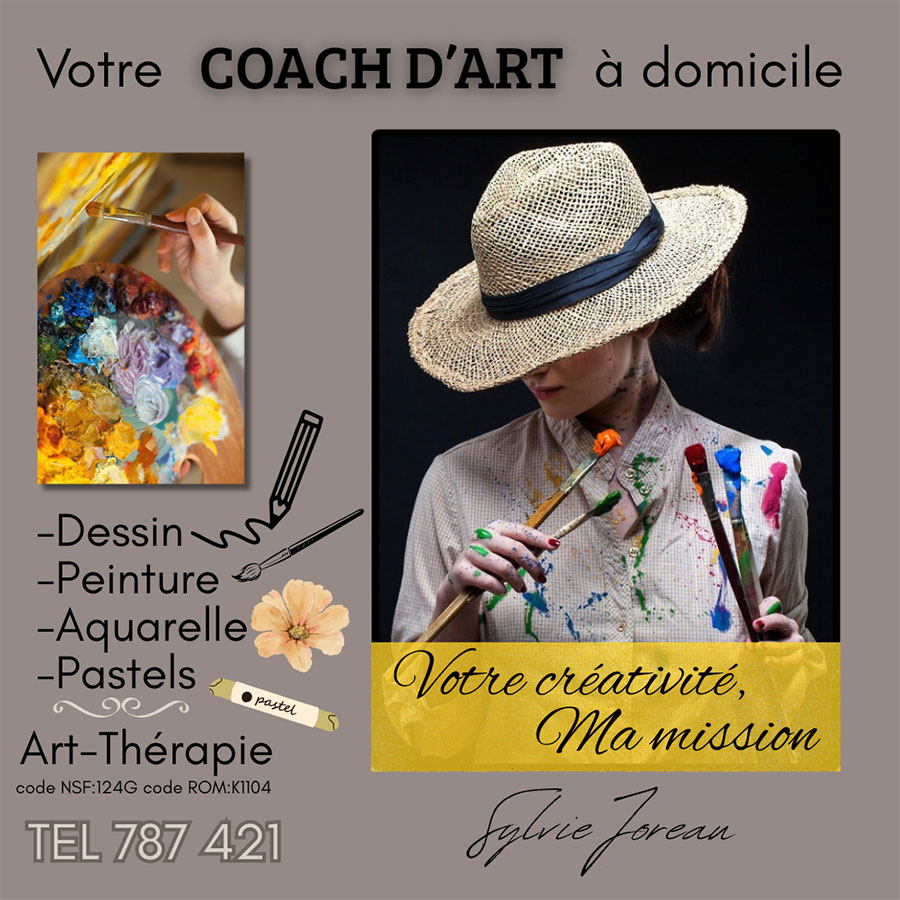 Sylvie Joreau, gérante de l'Art et la Manière agrée N°2905-2022/1RR/DPASS au 245 rue Jacques Iékawé PK6 Titulaire du titre RNCP* (Répertoire National des Certfications Professionnels) d'Art-Thérapie Arrêté du 26 /09/16 publié au J.O.R.F N° 231du 04/10/2016